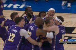 ·比赛最后1秒,湖人底线球,肯纳德弧顶三分空位,张弓搭箭绝杀魔术,魔术104-105湖人