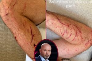 55岁希勒骑自行车时受伤:手臂、腿部多处割伤和擦伤