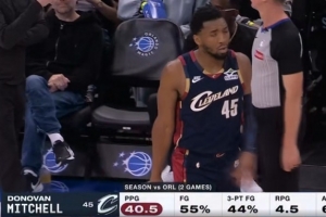 米切尔本赛季面对魔术场均砍40.5分 个人面对单一对手赛季最高分