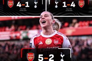 北伦敦德比全面压制!阿森纳男女足均大胜,且都有球员帽子戏法