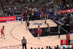 跟前队友学的?恩比德面对文班 双后撤步从罚球线撤出三分线命中