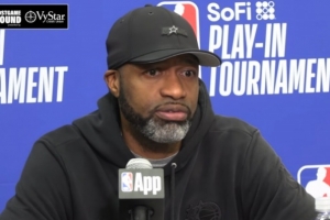 莫斯利:“是的,他们在阻止他进入禁区方面做得非常好。当他持球时,他们会蜂拥而上。我认为我们必须继续做好在他突破时为他创造空间的工作,并且在他遭遇包夹后能将球分出来。但是,你必须给予76人队充分的肯定,他们收缩防线、保护禁区做得很好。然而,我们的小伙子们依然在战斗,他们的精神状态很积极,他们清楚我们需要回到主场,在周五的比赛中捍卫我们的主场。”