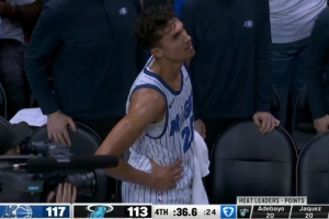 超巨失误!席尔瓦运球砸脚上出了边线 热火36.6秒落后4分有机会了