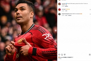 本场比赛卡塞米罗先拔头筹,赛后他也在个人社媒晒出自己手指曼联队徽的庆祝动作,配文写道:“为我们的球队感到骄傲,为我的球迷骄傲!加油红魔!”